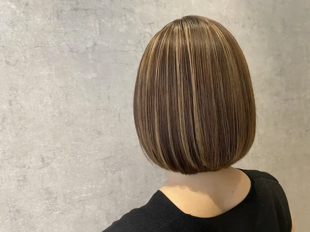 ハイライトとは毛束をすくってスジでブリーチをしていく技術で